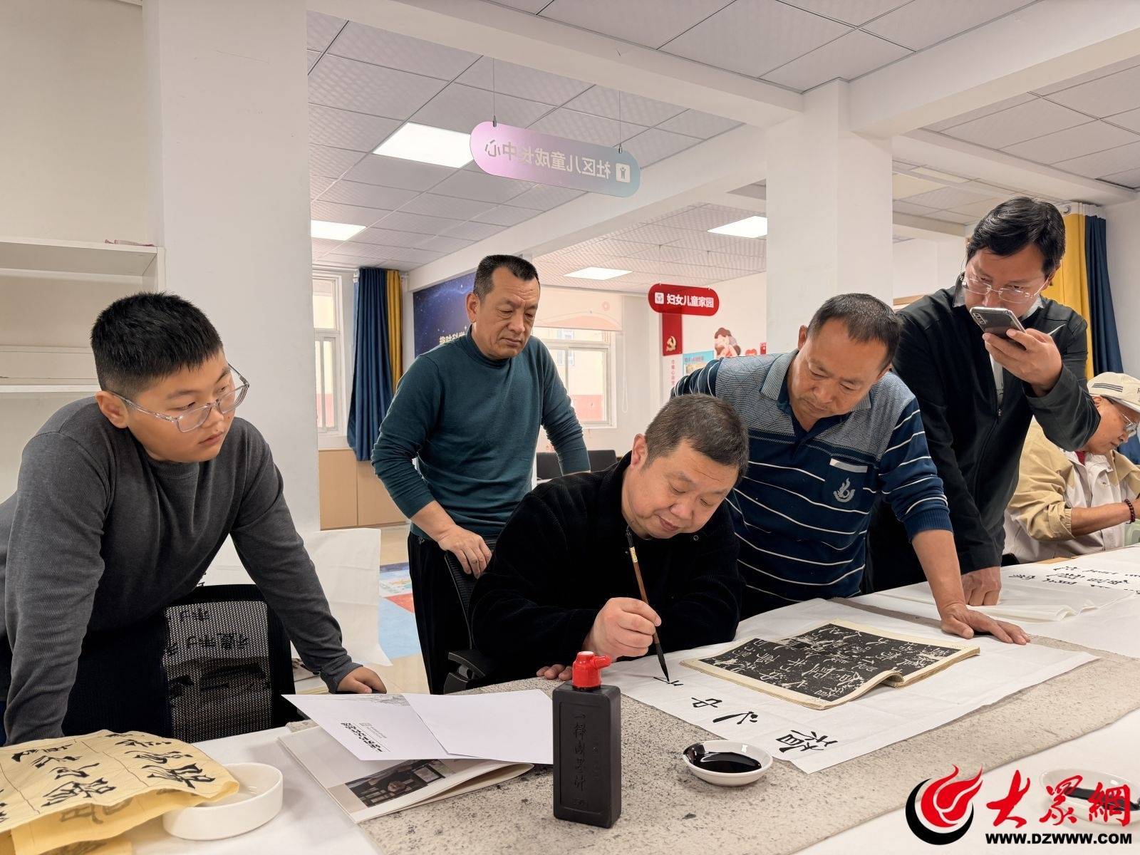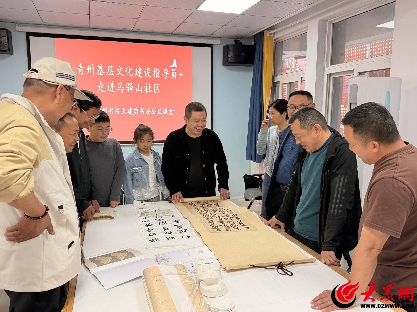 r潍坊青州市王府街道马驿山社区党群服务中心内,墨香袅袅、研讨热烈,10余位书法爱好者围坐一堂,基层文化建设指导员王建勇正在进行公益书法授课。活动现场,有年过半百的长者,也有稚气未脱的少年,一场“家门口的书法盛宴”,让传统文脉在基层浸润蔓延。